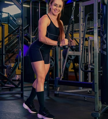 Minha missão é desmistificar a musculação feminina e mostrar que toda mulher pode ser forte, confiante e saudável, independente da idade, nível de condicionamento ou rotina.